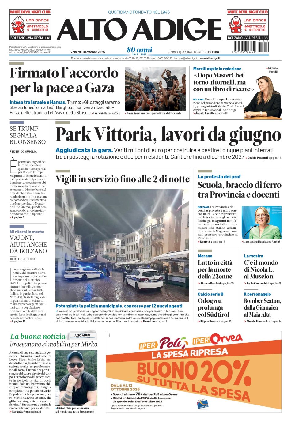 Riceviamo e pubblichiamo la prima pagina del quotidiano “Alto Adige”, oggi nelle edicole in provincia di Bolzano.Ringraziamo per la collaborazione l’editore Sie Spa ed il direttore Valentino Beccari.